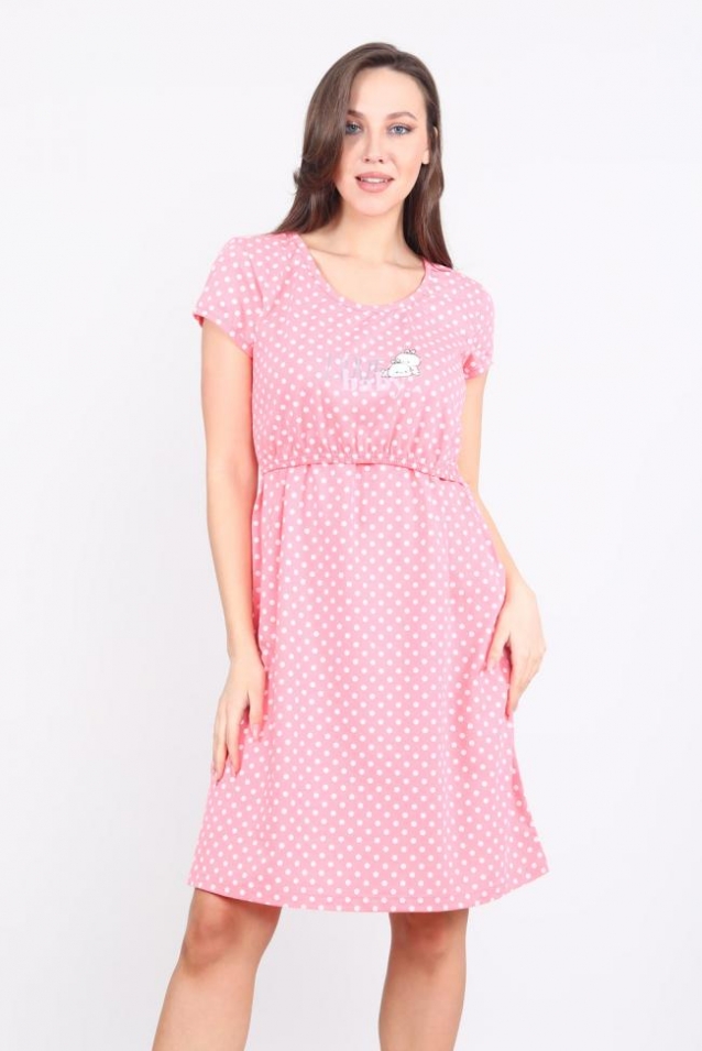 Сорочка женская с рукавом для беременных и кормящих. Данная модель выполнена из трикотажного полотна кулирка (хлопок 100%). Полочка состоит из двух частей, верхняя кокетка поднимается так, чтобы было удобно и без усилий покормить малыша. Отлично подходит для сна и отдыха дома. Рост модели на фото 170 см, размер 42-44