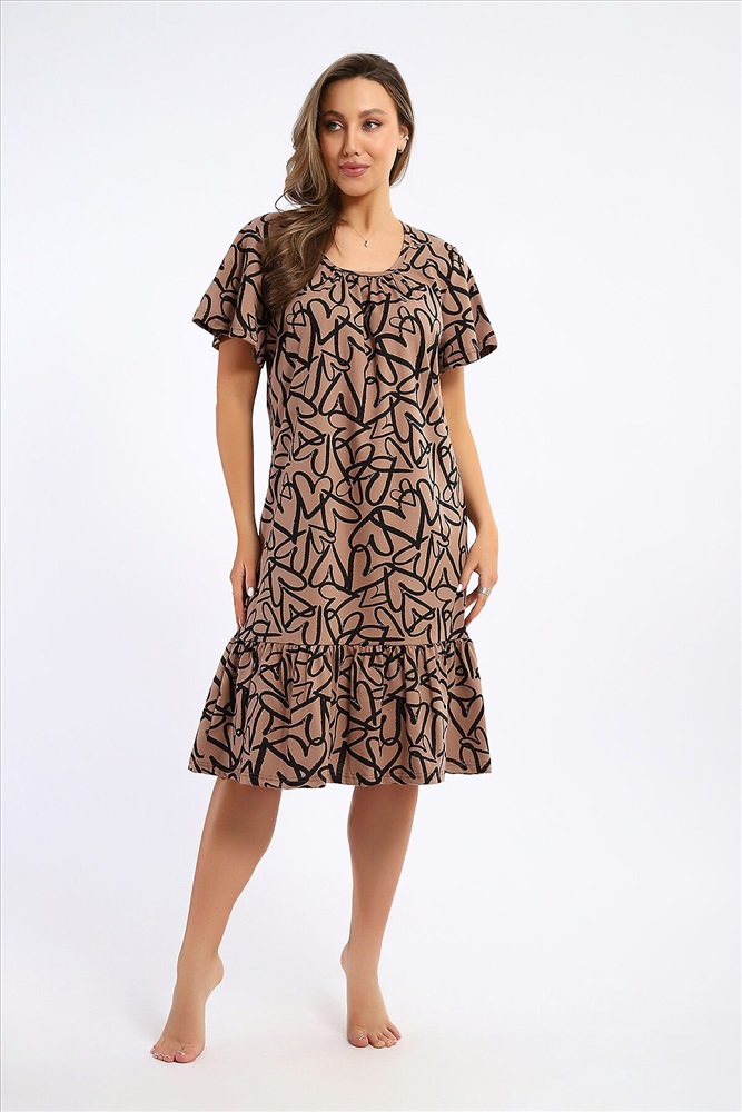 Сорочка с короткими рукавами - крылышками. По центру выреза сборка и волан со сборкой по низу изделия. Комфортна для повседневной носки и сна.