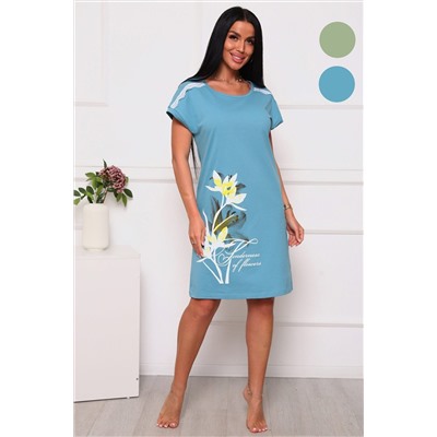 ID товара: 1072266 Состав: Хлопок 100% Сезон: Осень/Зима Длина: Короткая Фасон: Полуприлегающий Рукав: короткие Декоративные элементы: Принт Основная ткань: Хлопок Вид ткани: Кулирка Страна бренда: Россия Страна производства: Россия Сорочка женская полуприлегающего силуэта. Длинна чуть выше колена, плечо спущенное без рукава. Горловина круглой формы, обработана окантовкой. На полочке располагаются две небольшие кокетки в районе плеча с кружевом. Принт (шелкография) располагается по низу изделия с правой стороны. Комментарии к товару
