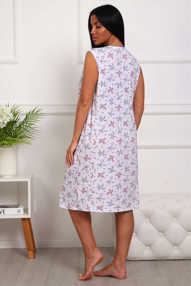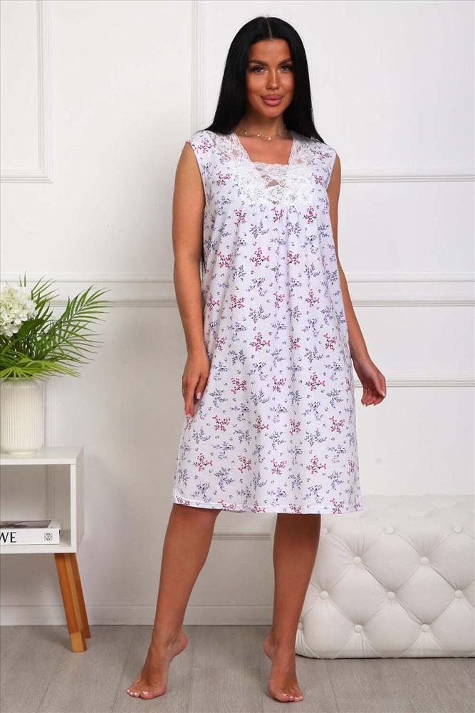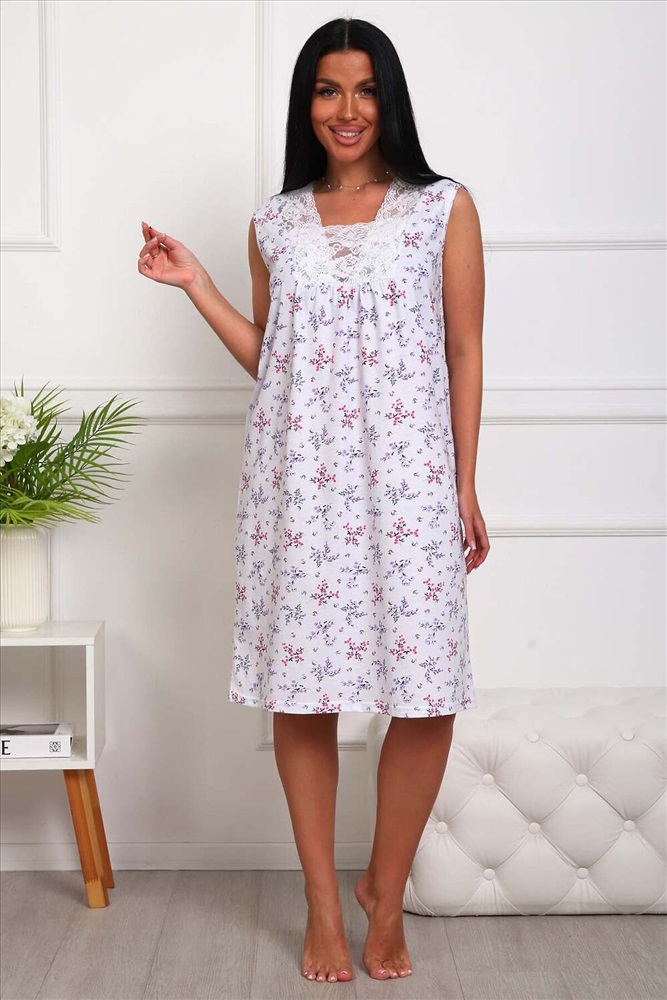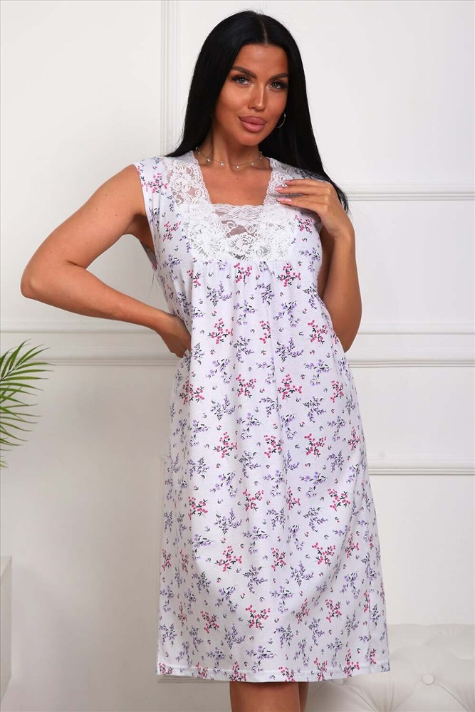 ID товара: 1224266 Состав: Хлопок 100% Сезон: Демисезон Длина: Ниже колена Фасон: Прямое Рукав: Без рукавов Декоративные элементы: Принт Основная ткань: Хлопок Вид ткани: Кулирка Страна бренда: Россия Страна производства: Россия Сорочка женская из натурального набивного полотна. Хлопок 100%. Силуэт прямой. Длинна чуть ниже колена. Горловина фигурной формы, отделана кружевом. По линии груди легкая сборка. По спинке рельефы. Без рукава. Пройма и горловина спинки обработаны окантовкой. Низ изделия прямой. Комментарии к товару