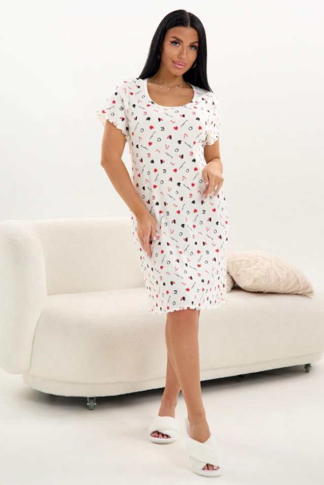 Ночнушка из легкой и очень приятной к телу ткани с натуральным хлопком в составе обеспечит идеальное сочетание мягкости и удобства. Сорочка с рукавом со слегка приталенной посадкой красиво подчеркивает фигуру, не стесняя движений. Красивый принт и декоративная строчка по краю подола делают изделие невероятно милым и женственным.