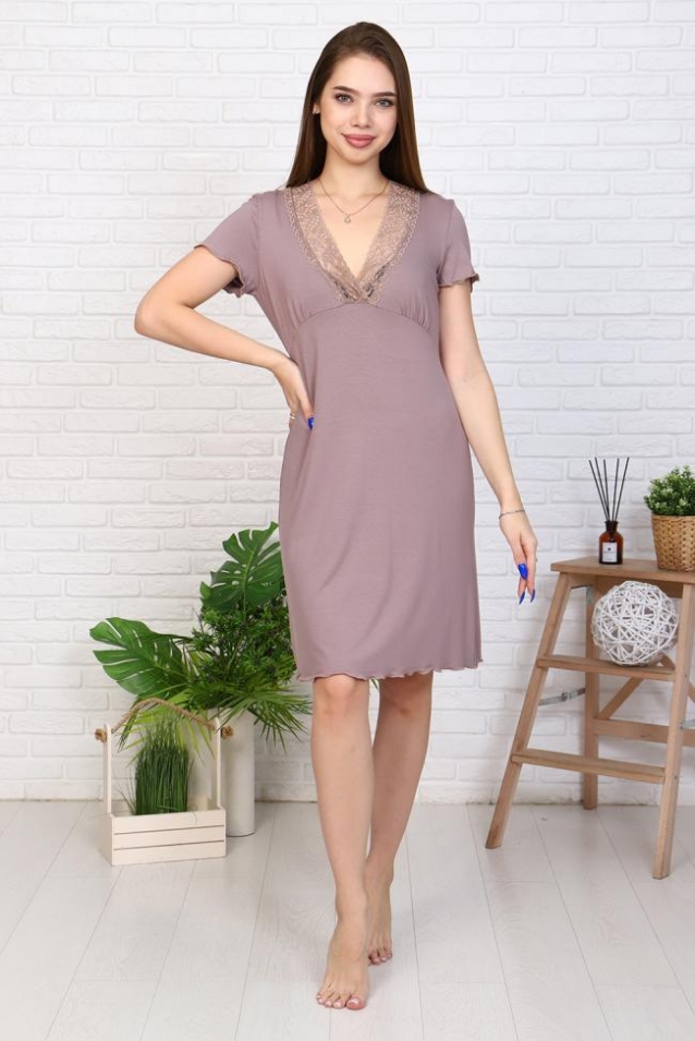 Ночная сорочка с кружевной вставкой по линии груди, есть небольшой рукав. Легкая, дышащая ткань отлично тянется и идеально ложиться по фигуре не стесняя движений.