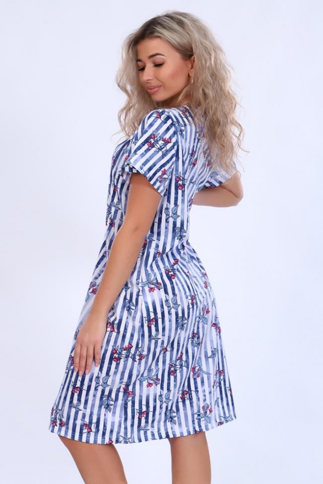 Сорочка свободного кроя с отрезной кокеткой. По линии груди заложено по три складки с каждой стороны. Короткие рукава крылышки. Необходимый элемент домашнего гардероба. Комфортна для повседневной носки и сна. Рост модели на фото 165см, размер 44