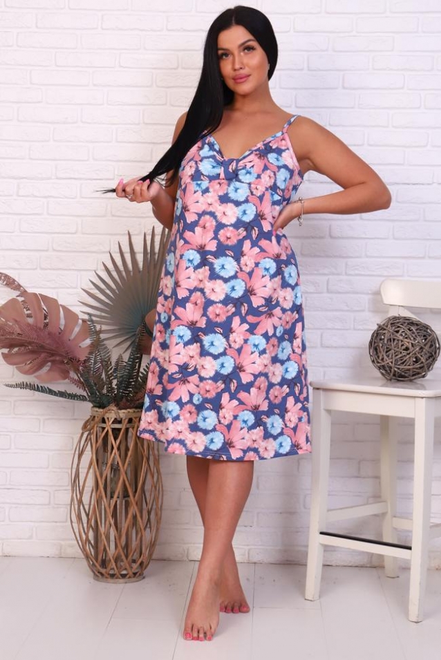 Женская сорочка из кулирки, на бретельках, лиф оформлен в виде банта