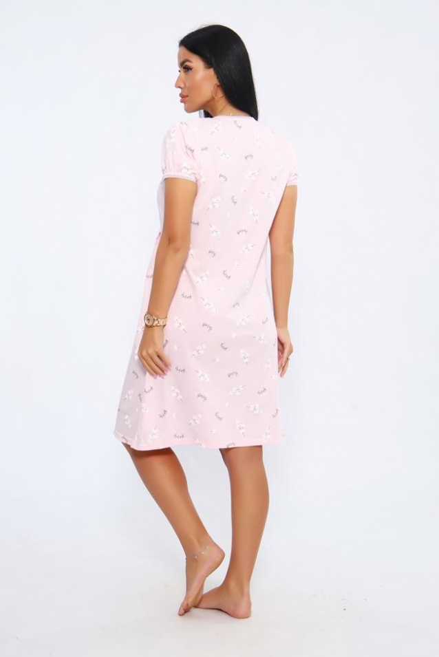 Женская сорочка с V-образным вырезом на кнопках. Отличный вариант для сна и отдыха, идеально подходит для кормления малыша. Данная модель выполнена из приятного к телу материала, трикотажного полотна кулирка (100% хлопок). Пройма и горловина обработана кружевной резинкой.