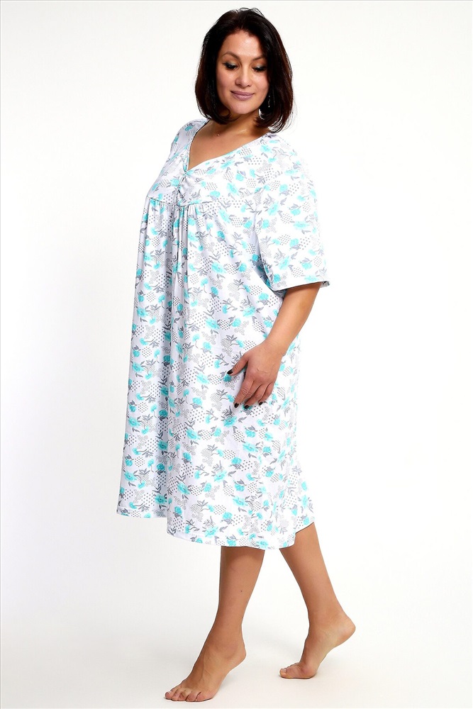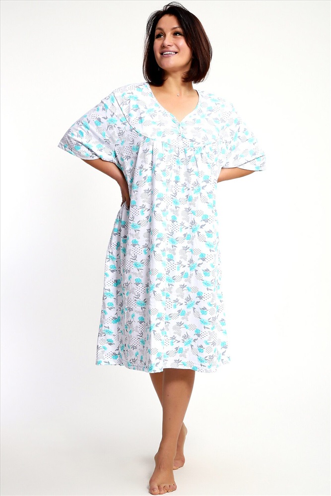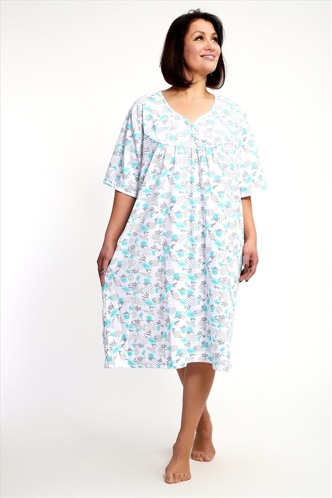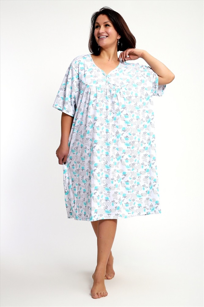 Сорочка женская с рукавом и кнопками. Данная модель выполнена из трикотажного полотна кулирка ( хлопок 100%). У данной модели полоска и спинка отрезная . Свободного покроя, не стесняет движения.