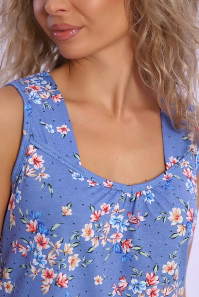 Сорочка полуприлегающего силуэта на широких бретелях и со сборкой по центру выреза декольте.