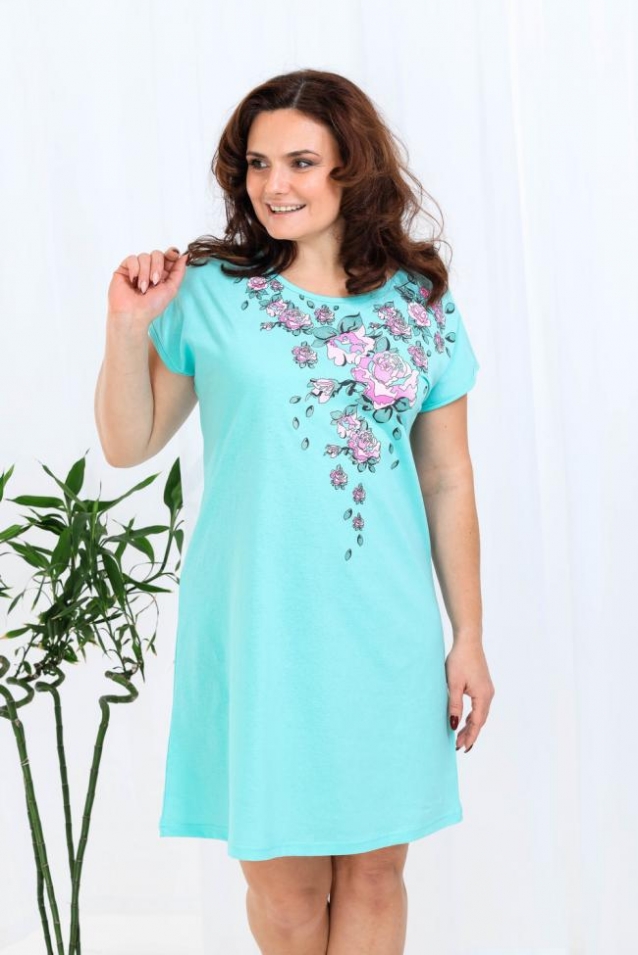 Нежная сорочка с оригинальным принтом в виде россыпи цветов, в лепестках которых - серебристый глиттер. Спущенная пройма. Простой, удобный крой. Для более свободной посадки рекомендуем заказывать на 1-2 размера больше