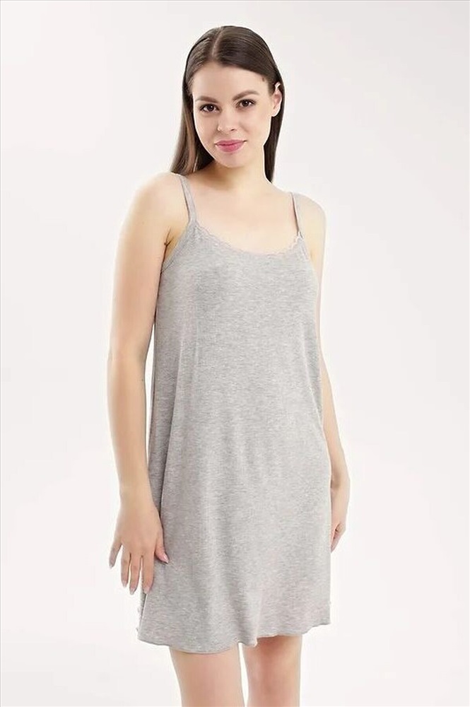 ID товара: 1136589 Состав: 90% Вискоза, 10% Эластан Сезон: Демисезон Длина: Короткая Фасон: А-силуэт Рукав: Без рукавов Основная ткань: Вискоза Страна бренда: Россия Страна производства: Россия Ночная сорочка для дома и отдыха из вискозного трикотажного полотна кашкорсе лапша. А-образного силуэта длиной чуть ниже колена, на узких бретелях. Спереди по горловине кружево, по спинке окантовка. По низу изделия узкий оверлок. Комментарии к товару