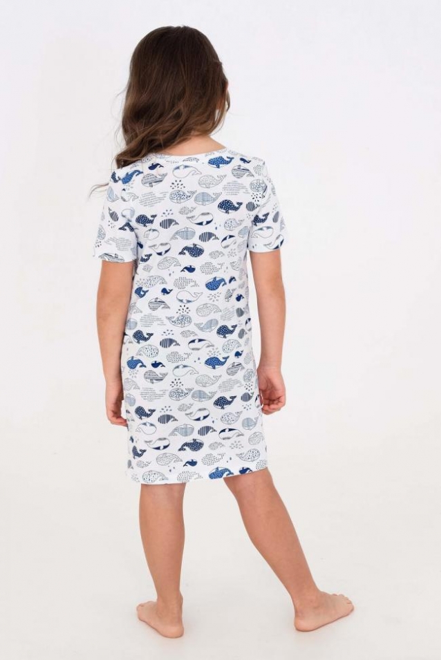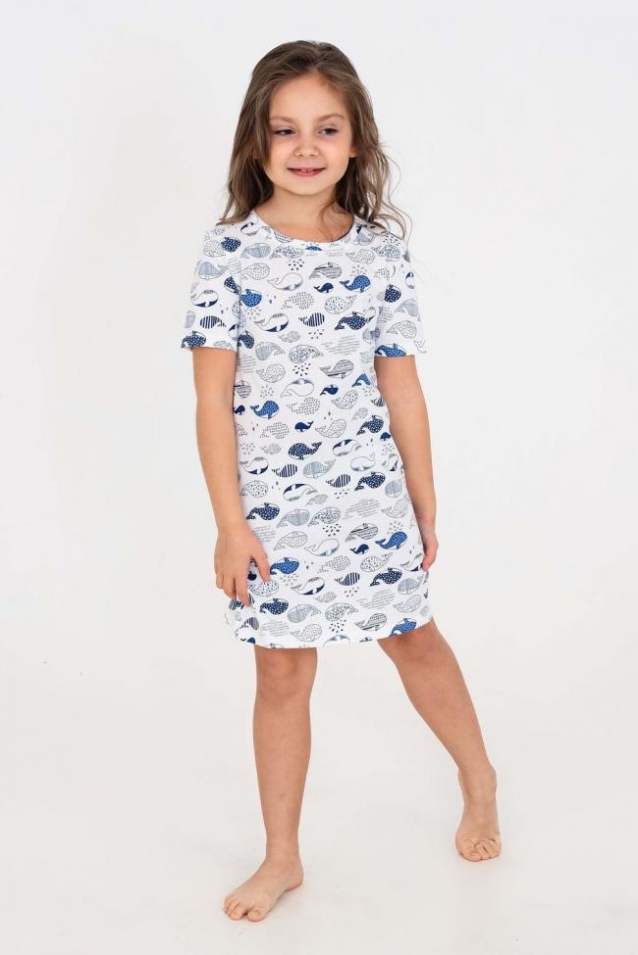 Сорочка киты. Для подростков и детей. Яркая туника MY KO свободного кроя выполнена из трикотажного полотна кулирка, в составе которого только хлопок (100%). Очень комфортное домашнее платье детское дарит свободу движений, идеально подходит для ежедневного использования дома, для сна и отдыха, на даче, в поезде, можно взять с собой в поход или поездку на море. Ночнушка из натурального хлопка. Удобная длина выше колена. Сорочку можно носить как домашнее платье. Натуральная ткань приятна к телу, в ней комфортно спать и проводить время дома. Износостойкий материал не боится частых стирок, сохраняет яркость принта надолго.