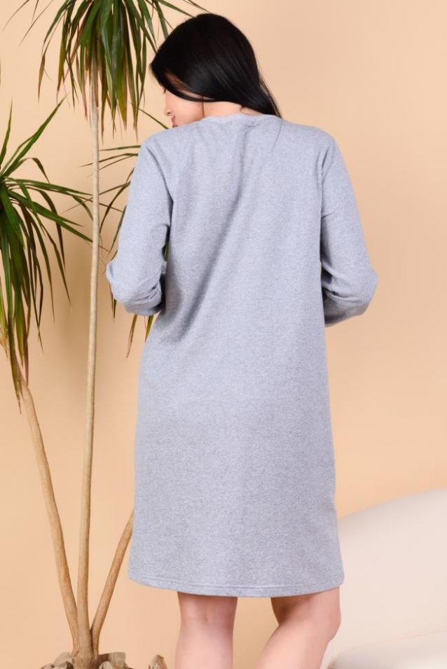 Сорочка-домашнее платье из тёплого футера с начёсом. Свободный крой обеспечит вам удобство и комфорт. Благодаря наличию в составе 20% п/э ткань не будет деформироваться. Спокойная расцветка не будет раздражать в условиях ограниченного пространства. Горловина и манжеты обработаны качественной тканью кашкорсе.