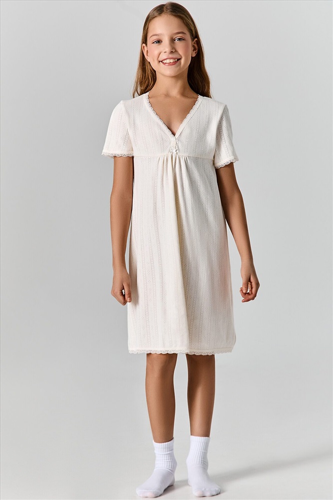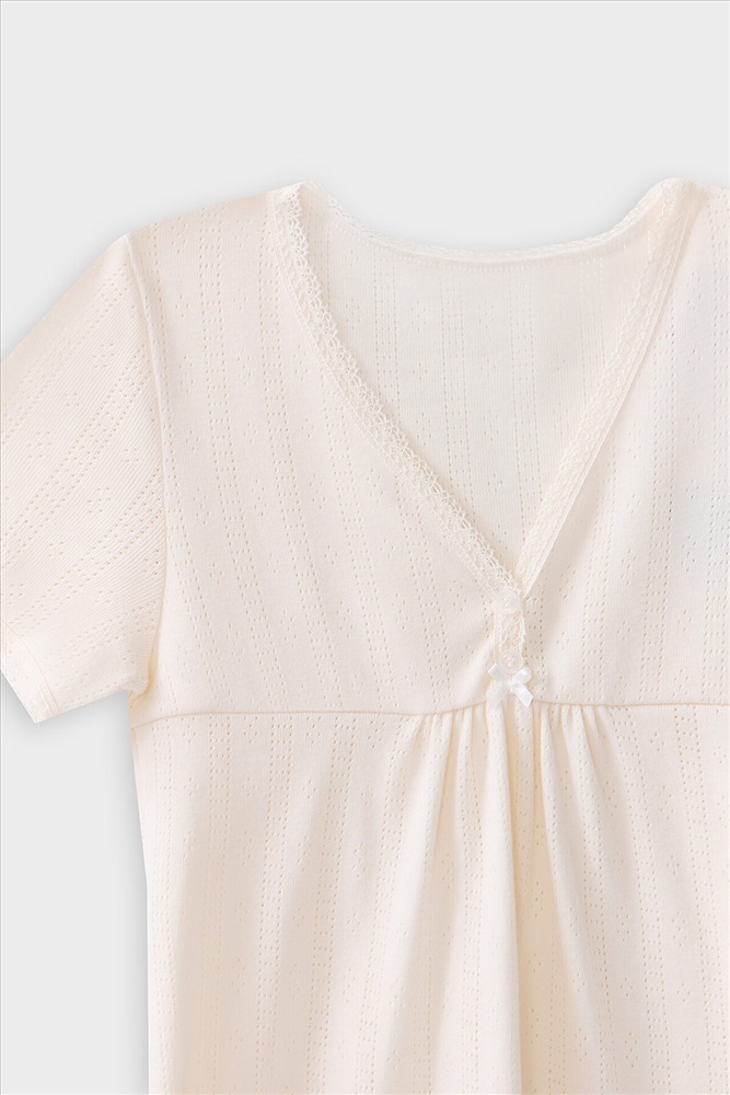 ID товара: 1232088 Состав: 100% хлопок Сезон: Весна/Лето Рукав: короткие Вид застежки: Пуговицы Вырез горловины: V-образный Тип карманов: Без карманов Декоративные элементы: Кружево Утеплитель: Без утепления Конструктивные элементы: Нет Уход: Деликатная стирка при 30 градусах Особенности модели: Нет Фактура материала: Рибана Страна бренда: Беларусь Страна производства: Китай Сорочка прямого ситлуэта. Горловина V-образной формы, обработана кружевом 15мм, Antik Dantel, L153-1,5. По переду пуговицы (2 шт) - d= 10 mm. Рукава короткие втачные.Низ изделия и рукавов обработана кружевом 15мм, Antik Dantel, L153-1,5. Декор по заданию - бантик (6737-0011А) Комментарии к товару