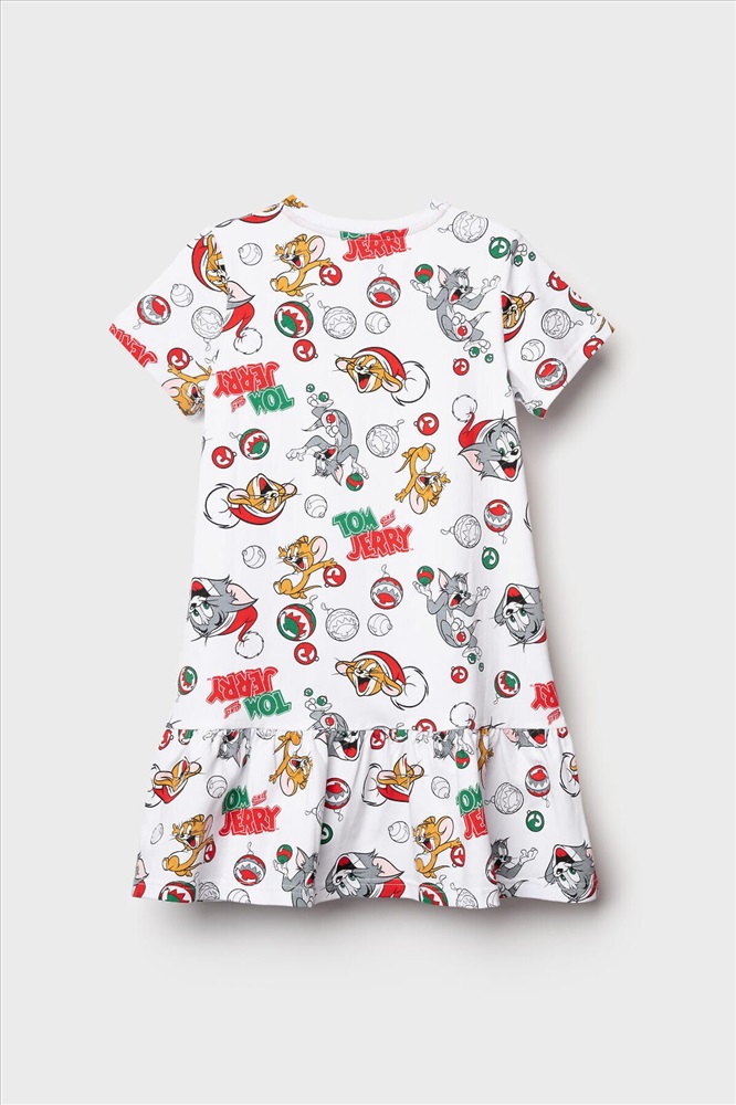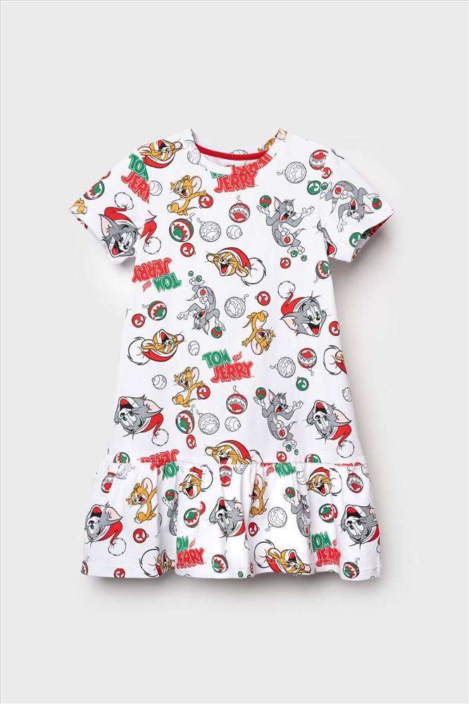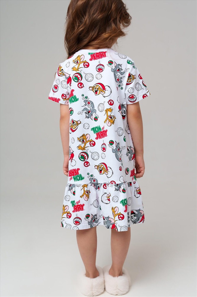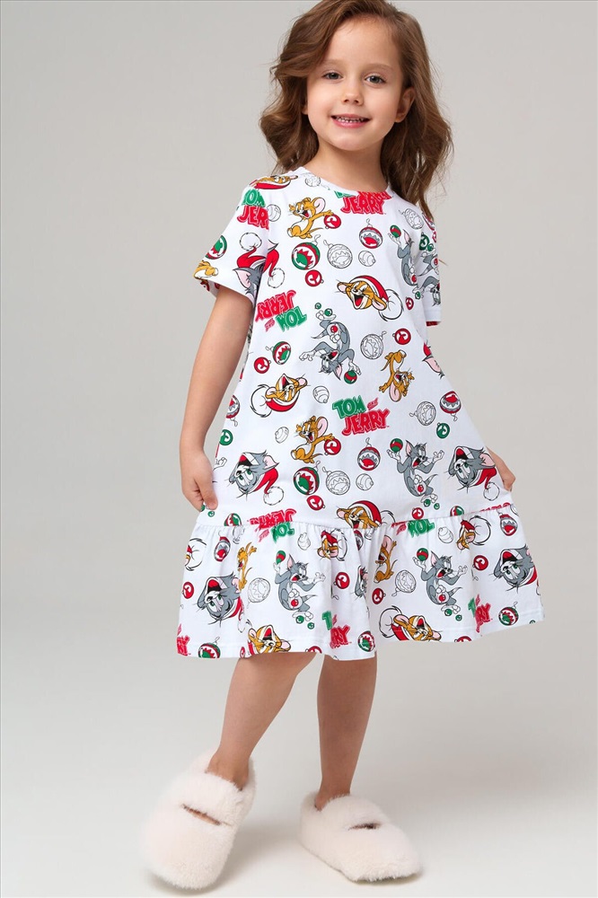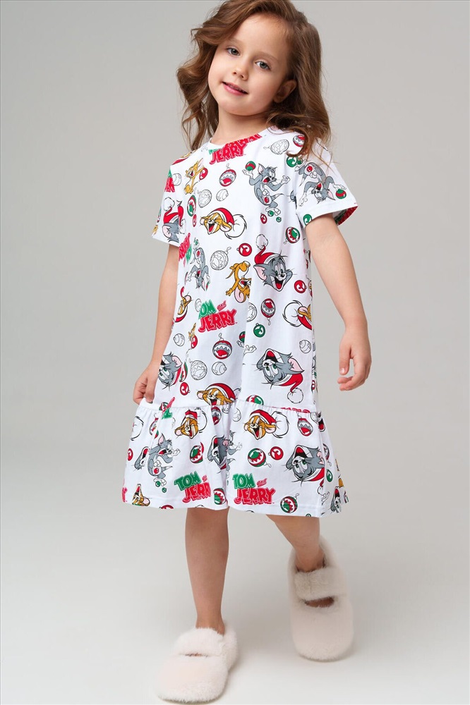 Детская трикотажная ночная сорочка для девочки с героями Том и Джерри от PlayToday — мягкий и яркий вариант для спокойного сна и уютного отдыха дома. Свободный крой и короткие рукава обеспечивают комфорт в течение всей ночи, а любимые персонажи на ткани делают сорочку особенно привлекательной для ребёнка. Преимущества модели: + мягкий хлопковый трикотаж — приятен к телу и не раздражает кожу + свободный крой — не стесняет движений во сне + короткие рукава — комфорт в тёплое время года + яркий принт Том и Джерри — любимые герои всегда рядом + универсальность — подойдёт и для сна, и как лёгкий домашний наряд Сорочка PlayToday помогает девочке чувствовать себя свободно и уютно. Яркий лицензионный принт с Томом и Джерри превращает обычный вечерний ритуал в праздник и делает сорочку любимой частью гардероба. Совет по стилю: Сорочка отлично сочетается с домашними тапочками и лёгким халатиком PlayToday — это готовый комплект для сна и утренних сборов. Размеры: 98, 104, 110, 116 и 122 см — подходят для девочек от 3 до 7 лет. Мягкая и яркая ночная сорочка для девочки с Том и Джерри от PlayToday — лучшее решение для комфортного сна и домашнего уюта.