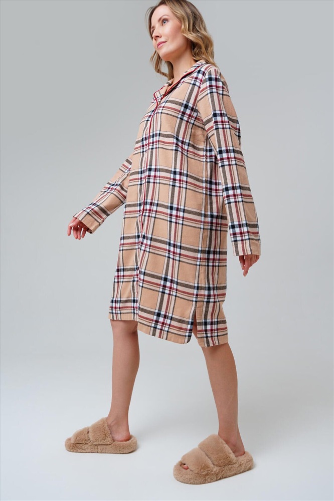 Женская ночная сорочка из фланели от PlayToday — тёплая, как плед, и нежная, как прикосновение. В ней легко расслабиться вечером и комфортно спать даже в прохладные ночи. Классический клетчатый дизайн и мягкий материал с микроначёсом делают её идеальным выбором для уютного домашнего гардероба. Преимущества модели: + застёжка на пуговицы — удобно надевать и регулировать комфорт + отсутствие карманов — ничто не мешает во время сна + ткань фланель с микроначёсом — мягкая, тёплая и приятная к телу + свободный крой — дарит комфорт и свободу движений + клетчатый дизайн — стильный и всегда актуальный Эта женская фланелевая ночная сорочка создана для тех, кто ценит уют и практичность. Ткань сохраняет мягкость даже после множества стирок, а свободная посадка позволяет чувствовать себя максимально комфортно. Совет по стилю: Сорочка прекрасно сочетается с домашними тапочками и халатом PlayToday. Для зимних вечеров можно дополнить образ мягкими носками — получится по-настоящему домашний комплект. Размеры: модель доступна в линейке S, M, L. Женская ночная сорочка из фланели от PlayToday — это уютная и стильная домашняя одежда, которая делает сон спокойным, а вечера особенно тёплыми.