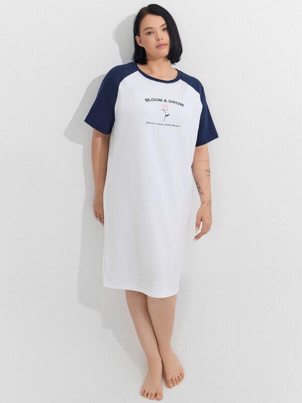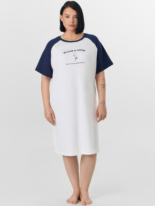Женская сорочка — комфортный и универсальный вариант для повседневного гардероба. Прямой силуэт обеспечивает свободную посадку, позволяя чувствовать себя уверенно и удобно в течение дня. Круглая горловина добавляет классический акцент, а короткие рукава реглан делают модель еще более комфортной, обеспечивая свободу движений. Нижний срез сорочки и рукавов обработан швом вподгибку, что придает аккуратность и увеличивает долговечность изделия. Материал — хлопковая кулирка — мягкий, приятный на ощупь и отлично пропускает воздух, создавая ощущение легкости и комфорта при носке. Простая, стильная и удобная — прекрасный выбор для тех, кто ценит качество и комфорт в одежде!
