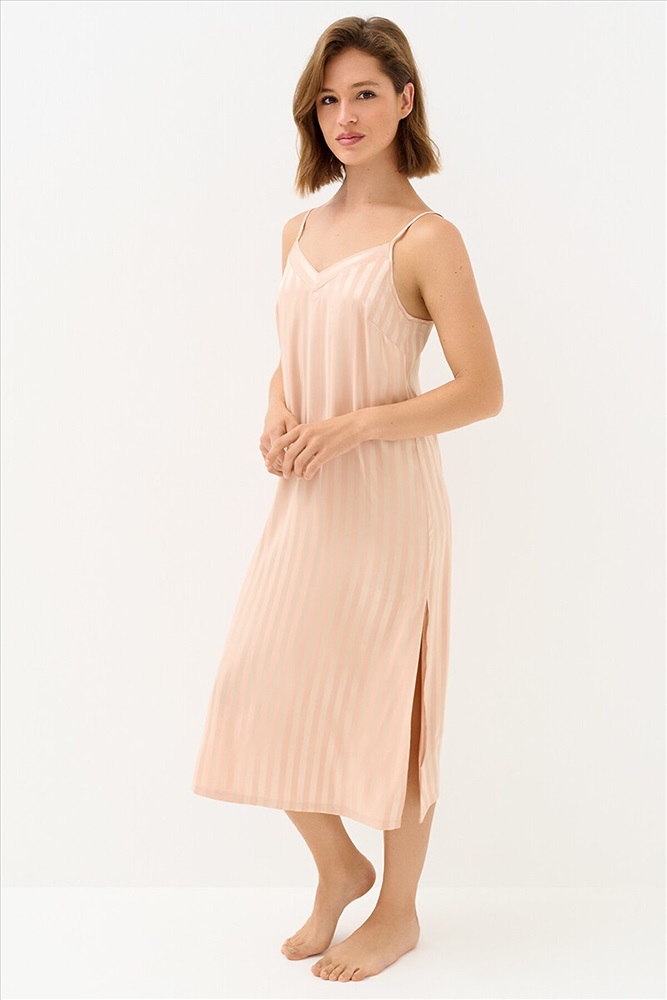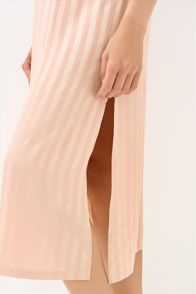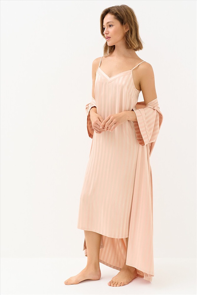 ID товара: 1218683 Состав: 95% Полиэстер, 5% Эластан Сезон: Демисезон Длина: Длинная Фасон: Полуприлегающий Рукав: Без рукавов Основная ткань: Полиэстер Страна бренда: Италия Страна производства: Китай Женская длинная сорочка в полоску с V-образным вырезом, однотонным кантом, регулируемыми бретелями и разрезом слева. Изготовлена из гладкого и лёгкого искусственного шёлка, который приятно ощущается на теле и хорошо сохраняет форму. Деликатная обработка краёв обеспечивает дополнительный комфорт. Современная интерпретация домашней классики — стильная и эффектная повседневная сорочка, которая грациозно струится по фигуре и изящно подчёркивает силуэт. Комментарии к товару