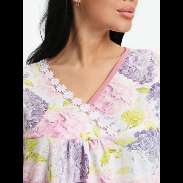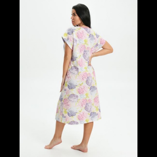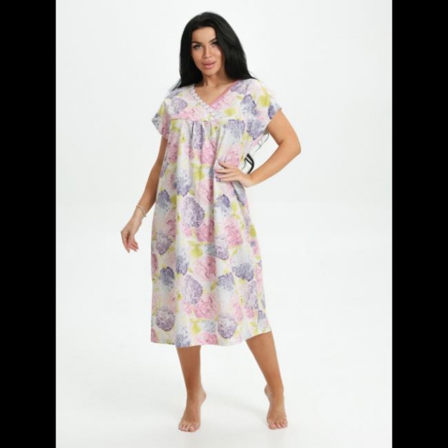 Сорочка выполнена в свободном и классическом стиле. Модель комфортна и эстетична, прекрасно подойдет для красивых женщин с пышными формами. Сорочка с кокеткой на полочке и V-образным вырезом, который подойдет девушкам с любым типом фигуры, потому что он визуально вытягивает линию шеи. Наша сорочка обеспечит Вам комфорт во время сна.