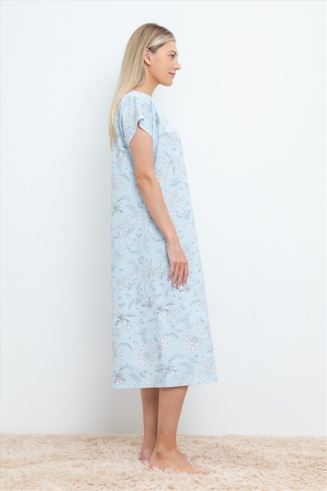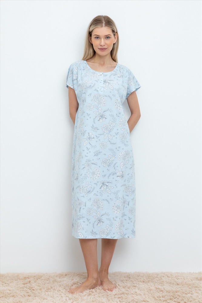 Уютная удлиненная сорочка с короткими рукавами из 100% натурального хлопка. Выполнена из набивного трикотажа супрем с нежным рисунком. На груди застегивается на пуговицы. Все трикотажные полотна производятся в соответствии с нормами Швейцарского сертификата ЭкоТекс. Сделано в России - 100% натуральный хлопок - гипоаллергенные красители - комфортная посадка