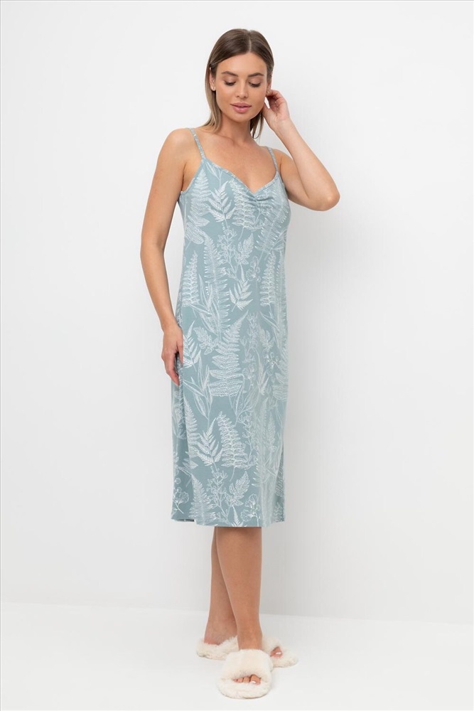 Элегантная женская сорочка с регулируемыми бретелями для комфортного сна. На груди декоративная сборка. Гладкий материал приятен к телу и позволяет коже дышать. Все трикотажные полотна производятся в соответствии с нормами Швейцарского сертификата ЭкоТекс. Сделано в Узбекистане - приталенный силуэт - гипоаллергенные красители - регулировка бретелей