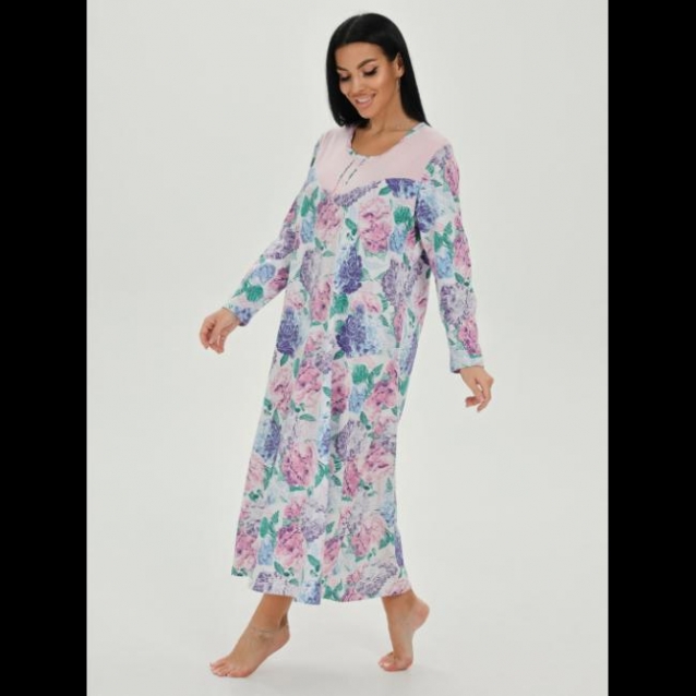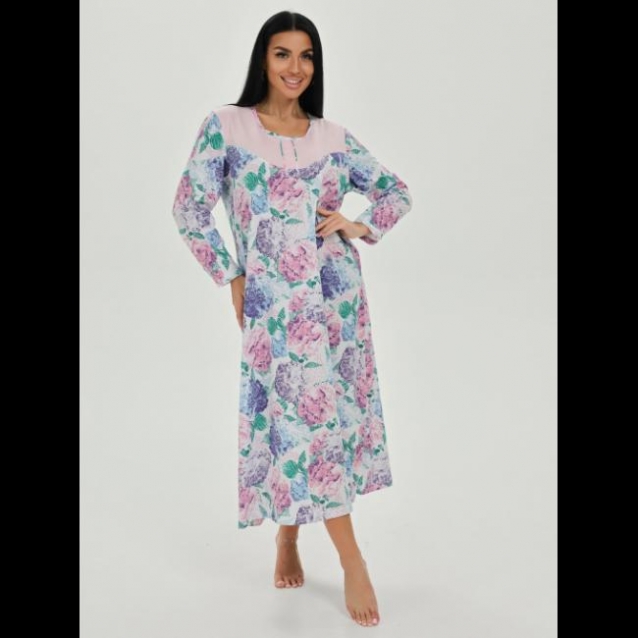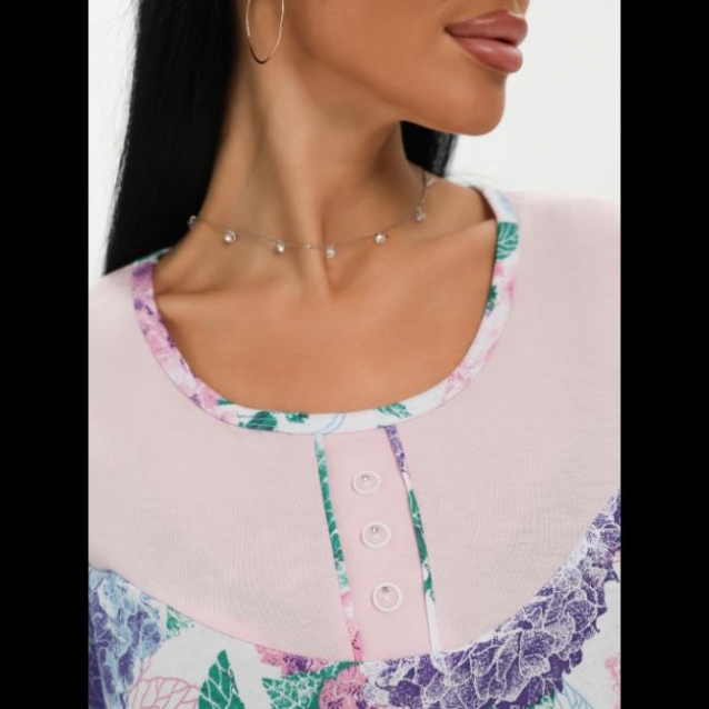 Наша сорочка с длинным рукавом, изготовлена из натуральной ткани. На полочке отрезная кокетка из однотонной ткани. Украшением служит планка с пуговицами на кокетке. Комментарии к товару