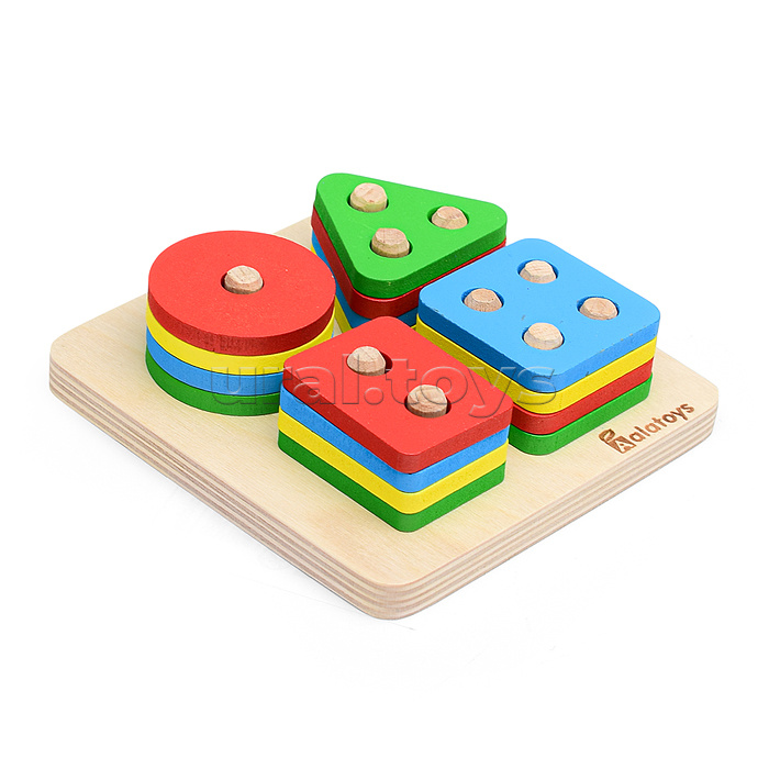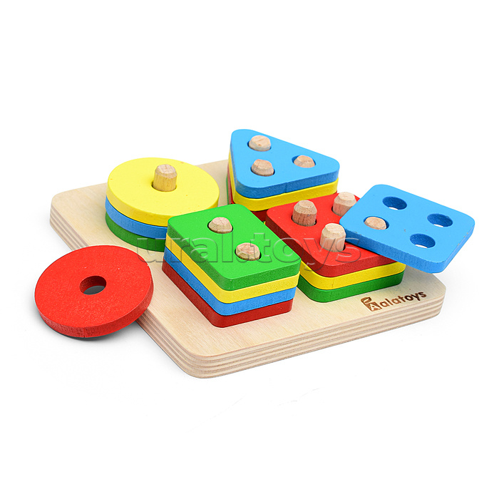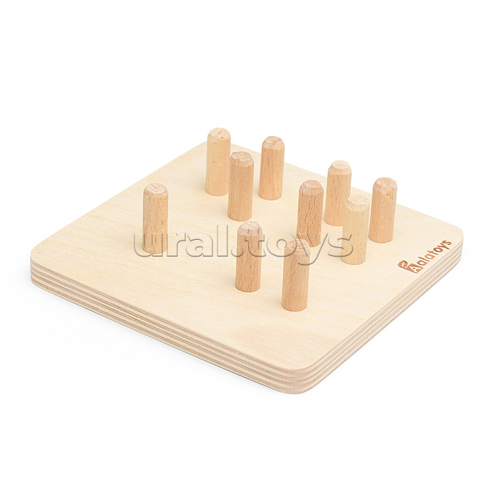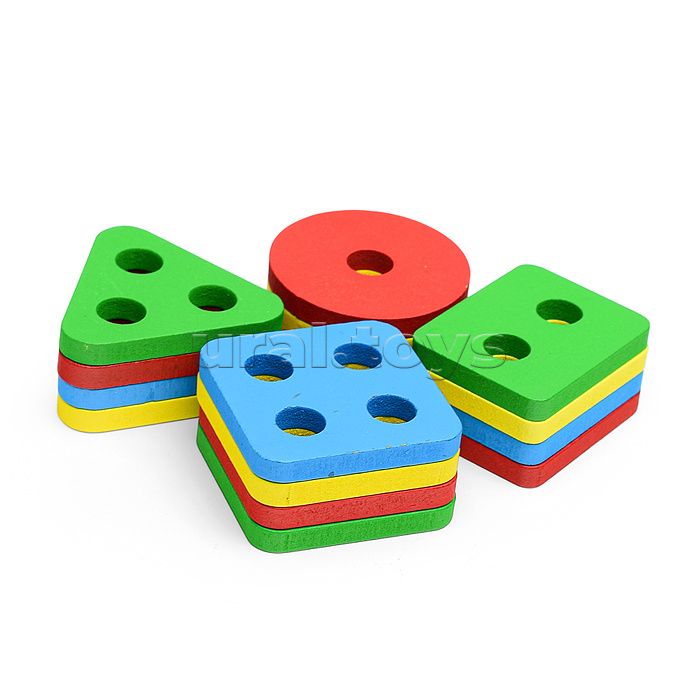 • В наборе: - основа со штырьками (13.5х13.5 см.) - 16 деталей с отверстиями. • Материал: дерево. • Соответствует требованиям безопасности и стандартам качества продукции. • Для детей от 3-х лет.