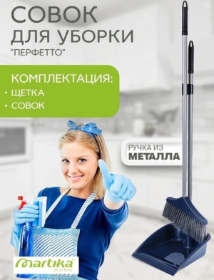 Комплект пластмассовый: совок с резинкой, рукоятка 70см металл окрашенный + сметка рукоятка 70см, металл окрашенный, ворс 8см