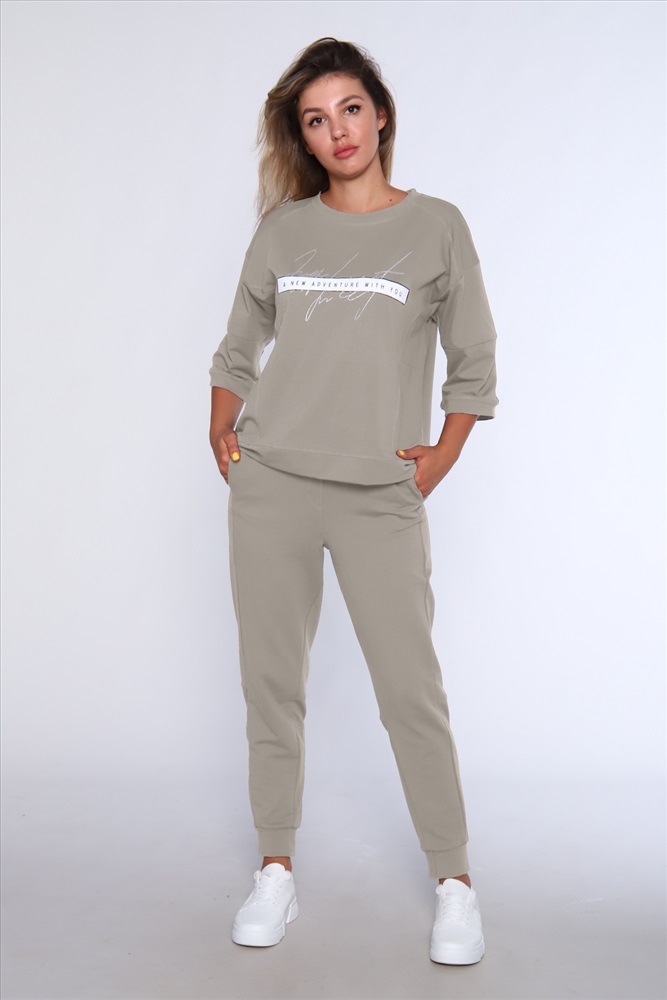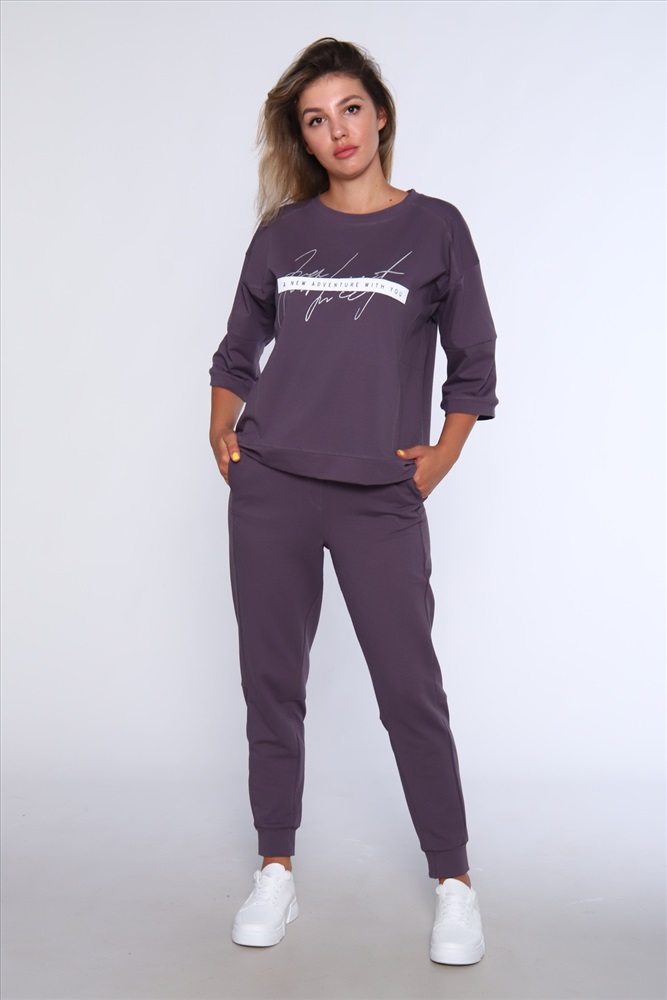 Состав: Хлопок 75%; полиэстер 20%; лайкра 5% Модель: Спортивный костюм с брюками и кофтой 359 Тип товара: костюм с брюками Материал: футер 2-х нитка | футер 2-х нитка Бренд: NINEL Карман: боковые Особенности: на резинке Отделка: с карманами | с манжетами | с печатью Посадка: средняя посадка Рисунок: надпись Рукав: рукав 3/4 Сезонность: лето | осень | весна | зима Силуэт: свободный Стиль: повседневный Воротник: без воротника Застежка: без застежки Костюм женский с зауженными брюками и манжетами внизу, на резинке и свободной кофтой с рукавами 3/4. Модель выполнена из футера 2-х нитки (петля - хлопок). Таблица размеров и весакофта