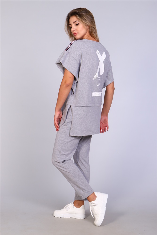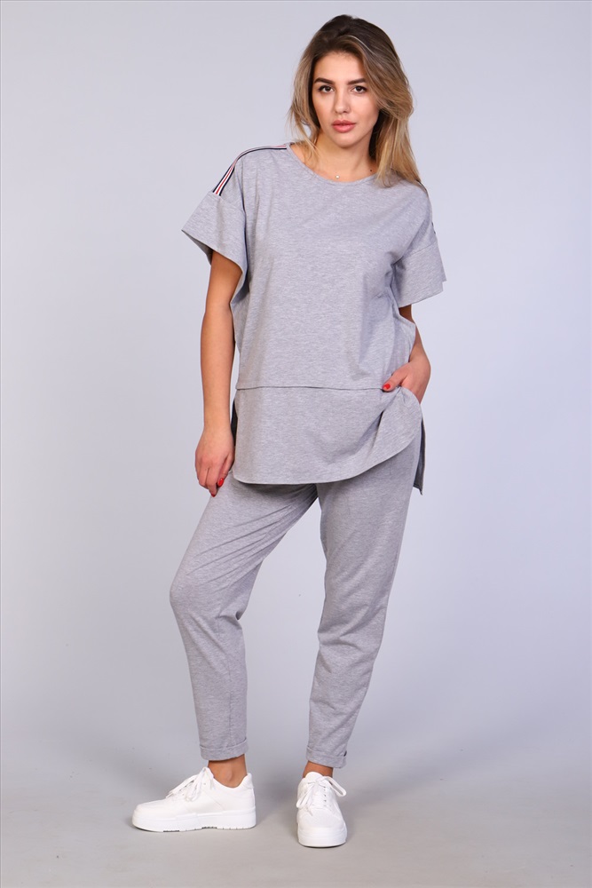 Состав: 92% хлопок; 8% лайкра Модель: Спортивыный костюм с брюками и футболкой 248 Тип товара: костюм с брюками Материал: кулирка с лайкрой | кулирка с лайкрой Бренд: NINEL Карман: боковые Особенности: на резинке Отделка: с карманами | с лампасами | с печатью Посадка: средняя посадка Рисунок: надпись | однотонные Рукав: короткий рукав Сезонность: лето | осень | весна | зима Силуэт: свободный Стиль: повседневный Воротник: без воротника Застежка: без застежки Костюм женский с зауженными брюками с подворотами, на резинке и свободной удлиненной футболкой с боковыми разрезами по бокам. Модель выполнена из премиального кулирного волокна с лайкрой. Таблица размеров и весафутболка