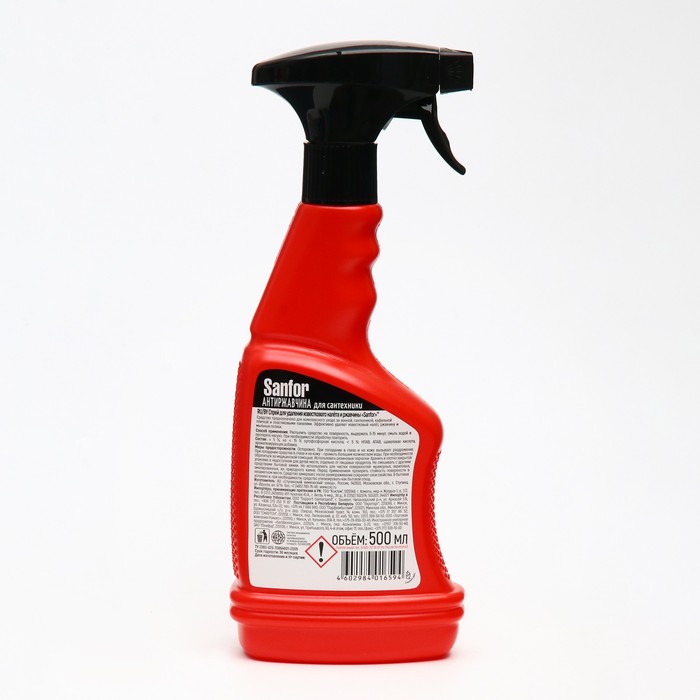 Габариты: 10 x 6 x 26 Доставка: Платная Страна: Россия В боксе: 12 шт Состав: См. на упаковке Материалы: см. на упаковке Фасовка: по 1 шт Индивидуальная упаковка: Без упаковки Сертификат: Не подлежит сертификации Объём, мл: 500 Sanfor - это большая линейка чистящих средств по уходу за ванной комнатой. Эффективная формула спрея Sanfor "Антиржавчина" легко и быстро удаляет известковый налет, ржавчину, въевшуюся грязь, уничтожает бактерии и микробы, устраняет неприятные запахи. Максимальный эффект чистки обеспечивает комплекс кислот в составе. Чистящее средство предназначено для чистки и ухода за ваннами, раковинами, кафельной плиткой. Спрей обладает антимикробным эффектом и подходит для ежедневного применения. Безопасность, экономичный расход и удобство в использовании обеспечивает удобный мультитриггер "спрей-пена" с блокиратором. Sanfor "Антиржавчина" - это гигиеническая чистота и свежесть ванной комнаты! Способ применения: распылить средство на поверхность, выдержать 5-15 мин, смыть водой и протереть насухо. При необходимости обработку повторить. Для достижения антибактериального эффекта средство выдержать 15 мин. Меры предосторожности: при попадании в глаза вызывает раздражение. Использовать резиновые перчатки. Хранить в недоступном для детей месте, отдельно от пищевых продуктов. Средство замерзает, после размораживания сохраняет свои свойства. Срок годности 36 месяцев с даты изготовления. Состав: ≥ 5%, но <15% лимонная кислота, <5% кислота щавелевая, <5% АПАВ, <5% НПАВ, < % ароматизирующая добавка. Комментарии к товару