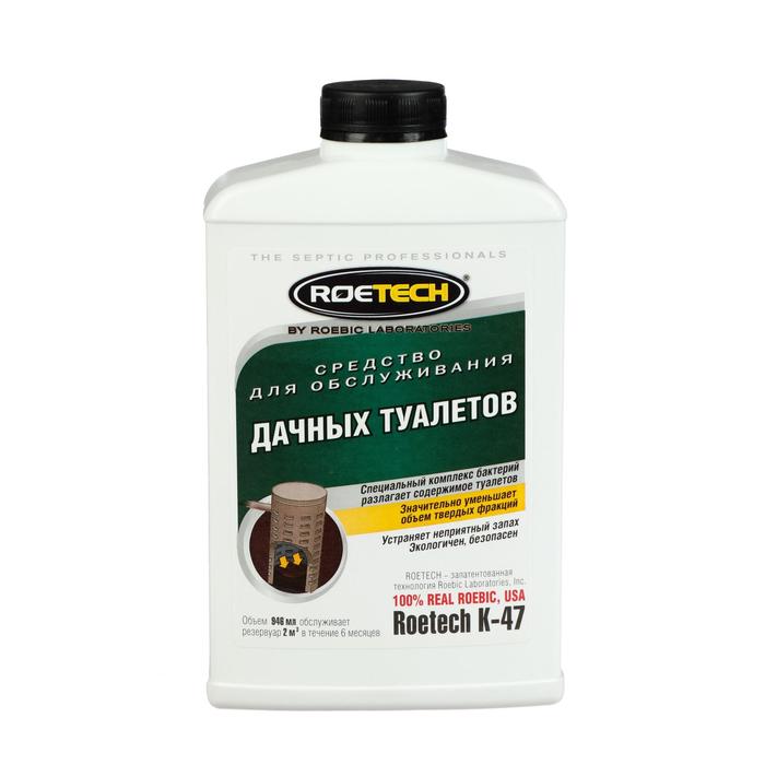 Средство для обслуживания выгребных ям дачных туалетов. Выгребные ямы требуют регулярной обработки из-за накопления органики, фекалий, бумаги, моющих веществ и различной химии. Это приводит к переполнению резервуаров, появлению неприятного запаха, ухудшению дренажа с последующим заиливанием системы. Использование Roetech К-47 позволяет устранять вышеуказанные проблемы путем быстрого разложения органических отходов и других загрязнений. Значительно уменьшает объем твердых фракций. Экологичен, безопасен.