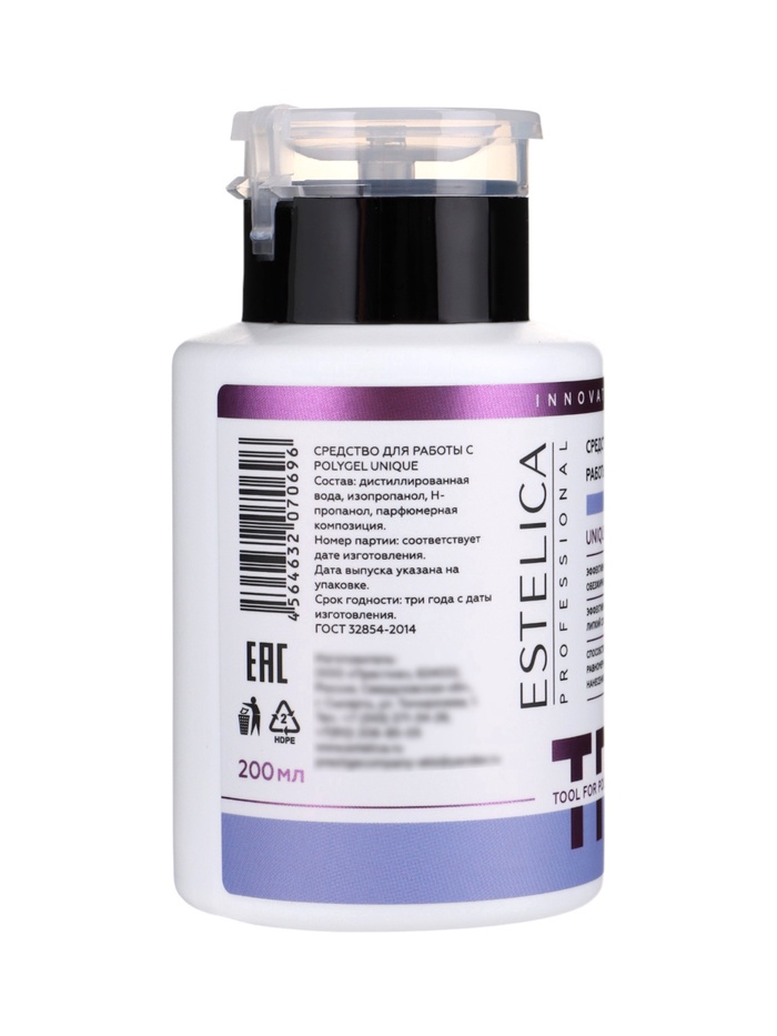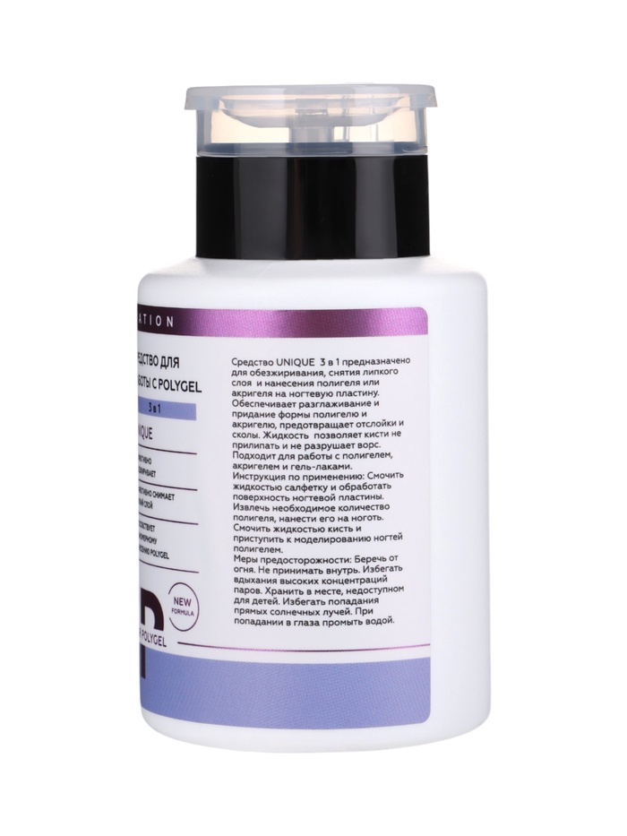 ESTELICA PROFESSIONAL UNIQUE 3 в 1, средство для работы с полигелем и акригелем 200 мл — универсальная жидкость для обезжиривания, снятия липкого слоя и моделирования полигелем или акригелем. Средство обеспечивает идеальное разглаживание и форму покрытия, предотвращает сколы и отслойки, а также позволяет кисти легко скользить, не повреждая ворс.