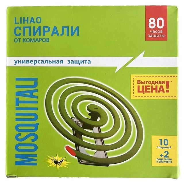 Москитол Спирали "Универсальная защита" от комаров эффективно уничтожают и отпугивают летающих насекомых на открытом воздухе и просто незаменимы там, где нет электричества - на даче, в походе, на рыбалке или на пикнике. Спирали экономичны и просты в использовании и справляются даже с большим количеством насекомых. Действие средства начинается через 10-15 минут после начала тления. Время полного сгорания спирали — 8 часов.
