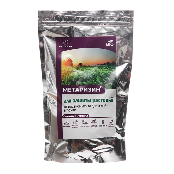 Габариты: 33 x 18 x 4 Страна: Россия В боксе: 20 шт Состав: См. на упаковке Материалы: см. на упаковке Фасовка: по 1 шт Индивидуальная упаковка: Без упаковки Сертификат: Не подлежит сертификации Вид средства: Инсектицид Область применения: От всех насекомых, От садовых вредителей Препаративная форма: Порошок Вид: БИОпрепараты Вес/Объём: 1 кг Способ нанесения: Опрыскивание, Полив Действующие вещества: Гриб (Metarhizium anisopliae) Тип пестицида: Контактный Средство от насекомых и вредителей. Отличительной особенностью данного гриба является способность проникать в организмы насекомых через кутикулу. Кутикула состоит из белков, хитина и липидов, и энтомопатогенный гриб Metarhizium anisoplie имеют высокую ферментативную активность для преодоления этого барьера и уничтожения почвенных вредителей. ПРЕИМУЩЕСТВА: - сроки выхода для проведения ручных работ не ограничены; - нет срока ожидания до сбора урожая; - высокая скорость воздействия; - обезвреживание в течение 10-12ч, гибель через 2-4 суток; период защитного действия препарата в течение всего сезона; - не вызывает резистентности (привыкания) у вредителей; - применим для выращивания органических овощей. НОРМА РАСХОДА ПРЕПАРАТА ДЛЯ ВСЕХ ВИДОВ КУЛЬТУР: - внесение в почву осенью под основную обработку почвы, в норме 5-15 кг/га; - внесение весной под предпосевную обработку почвы, в норме 5-15 кг/га; - обработка многолетних деревьев кустарников, методом закладки в лунки глубиной 25-70 см вокруг дерева с интервалом 1-1,5 м с последующим закрытием лунки почвой, в норме 10-20 г/лунка. РЕКОМЕНДАЦИИ ПО ПРИМЕНЕНИЮ: Препарат смешать с торфом, песком, органическими удобрениями разбрасывая по поверхности почвы, провести после этого заделки любым способом обработки почвы (культивация, вспашка, дискование и пр.). Для многолетних насаждений возможно внесение препарата в лунки. Для этого по диаметру кроны (или куста) делают лунки глубиной 25-70 см вокруг дерева с интервалом 1-1,5 м с последующим закрытием лунки почвой. В сухой почве эффективность препарата существенно снижается! Основные обработки рекомендуется проводить осенью и весной. Комментарии к товару