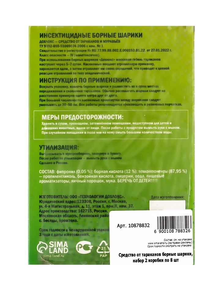 Как применять: разместите шарики за плитой, вдоль плинтусов, под раковиной и около мусорного ведра. Тараканы исчезают через 3-7 дней после размещения приманки. Набор подходит для использования в квартирах, частных домах, на дачах и в коммерческих помещениях.