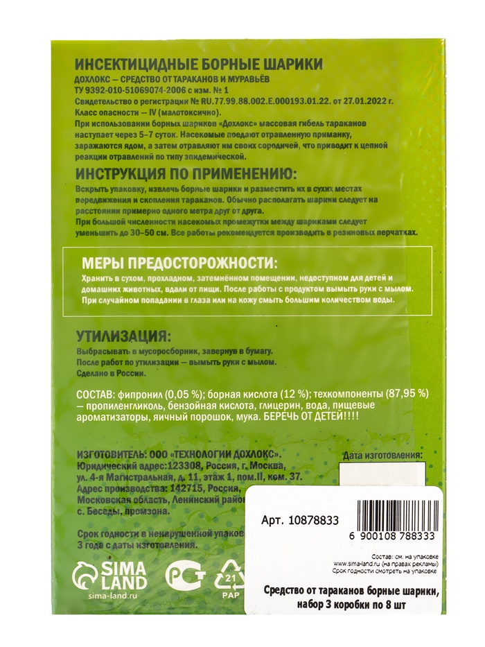 Рекомендации по использованию: разместите шарики в местах перемещения тараканов — около раковин, вдоль вентиляционных решёток, вокруг холодильника. Первые результаты заметны через 3-5 дней, полное исчезновение популяции происходит за 1-2 недели. Набор подходит для квартир, загородных домов, пищеблоков и складских помещений. Комментарии к товару