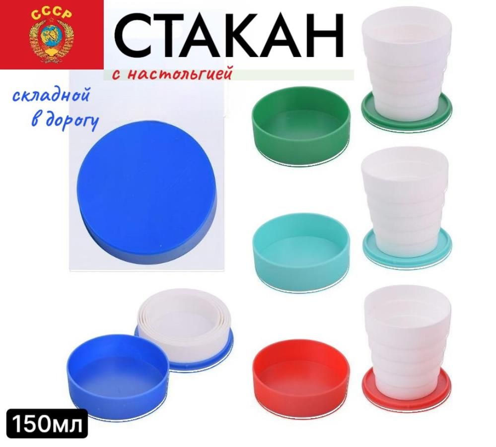 Вес уп.(гр) ~: 60 Стакан складной с крышкой 150 мл Цвет по наличию на складе