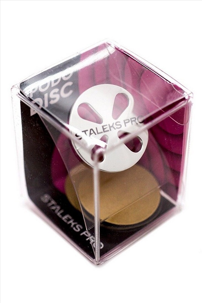 Набор педикюрный диск PODODISC STALEKS PRO L со сменным файлом 180 грит 5 шт (25 мм) Диск изготовлен из высококачественной нержавеющей стали. Уникальная конструкция с углом наклона, более легкая по весу в сравнении с обычным диском. Больше обзор при работе с пальцами и в слепых зонах стопы. Обеспечивает более качественную обработку боковых валиков и округлых частей стопы. Позволяет увеличить скорость выполнения педикюра Поддается дезинфекции специальными средствами. Поддается стерилизации в сухожаровом шкафу и автоклаве. Повышает гигиеничность и безопасность процедуры. Педикюрный диск Сталекс PRO представляет собой насадку для фрезера из нержавеющей стали, на которую крепятся одноразовые сменные файлы. Педикюрный диск размера L (диаметр 25 мм) позволяет качественно обрабатывать огрубевшую кожу стопы в труднодоступных местах, а также удалять ороговевшую кожу на пальцах стоп. Диск устойчив к коррозии, поддается дезинфекции и стерилизации. Края диска тщательно отполированы, благодаря чему он не травмирует кожу. Использование педикюрных дисков STALEKS PRO помогает значительно ускорить и облегчить процедуру педикюра, а также делает ее безопасной для клиента. Способ применения Установите насадку в аппарат, прикрепите одноразовый сменный файл на рабочую поверхность педикюрного диска, выполните процедуру, после окончания процедуры удалите использованный сменный файл, педикюрный диск продезинфицируйте и простерилизуйте согласно правилам дезинфекции и стерилизации маникюрного инструмента.