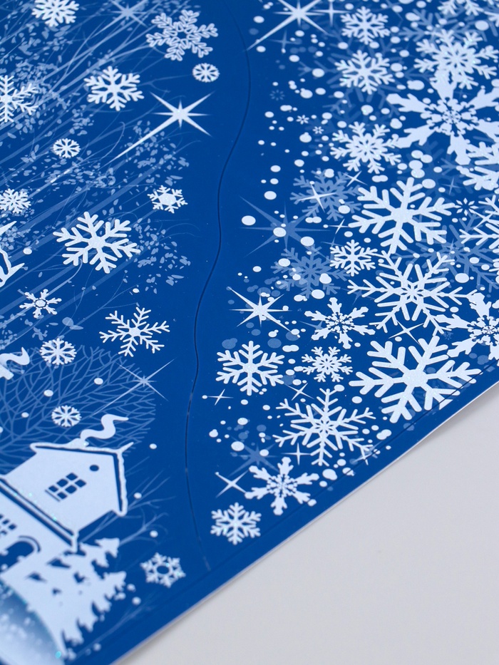 - Атмосфера зимнего праздника: Узор с уютными домиками и снежными сугробами создает ощущение сказки за окном. Превращает обычное стекло в картину с сюжетом, которая выглядит стильно и современно.