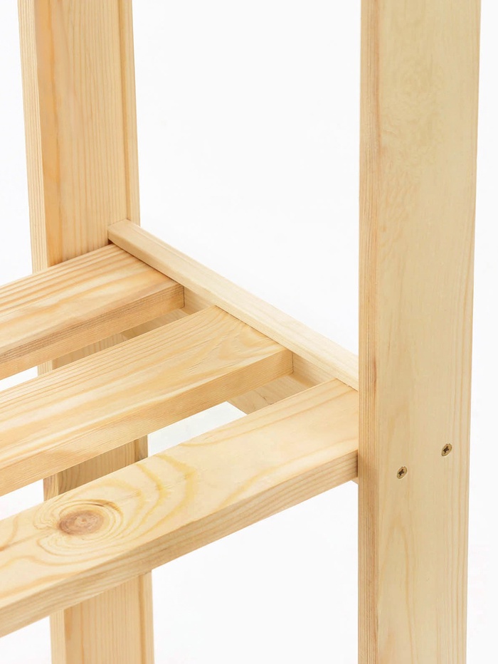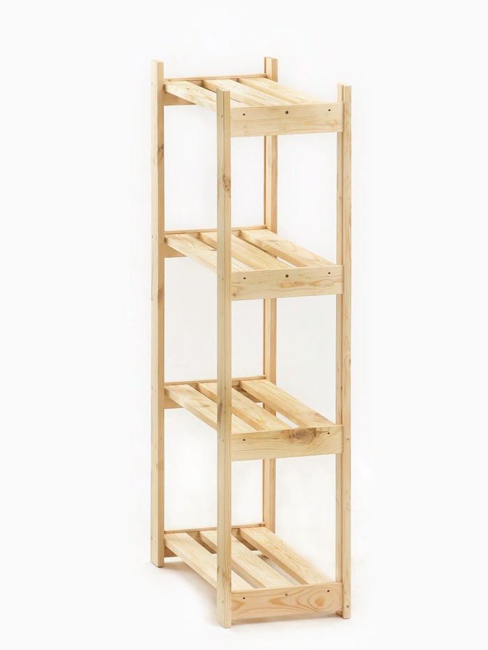 Открытый компактный стеллаж, сделанный из массива хвои, самый бюджетный в нашей серии. Он станет полезной частью гостиной, спальни, детской комнаты, квартиры-студии или офисных помещений.