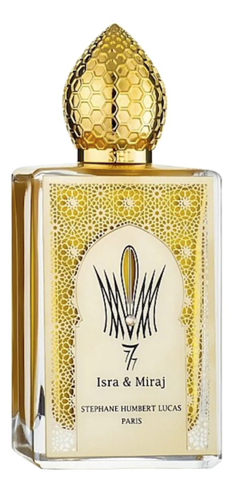 Isra & Miraj — нишевая парфюмерная вода с цветочно-восточным ароматом для женщин и мужчин, созданная в 2019 году парфюмером Стефан Юмбер Лука для французского парфюмерного бренда Stephane Humbert Lucas 777. Эксклюзивный аромат Isra & Miraj — один из семи уникальных парфюмов коллекции бренда, посвященной сверхъестественному, магическому, священному и счастливому числу 7. Аромат открывается тонкими аккордами мускатного ореха и пряной корицы, свежими искристыми цитрусовыми нотами бергамота и мандарина, которые переплетаются в «сердце» парфюмерной композиции с деликатным густым цветочно-ванильным запахом османтуса и сладостным цветочно-фруктовым, с оттенком марципана, акцентом гелиотропа. Богатый и насыщенный шлейф аромата соткан из дымных глубоких оттенков эфирного масла драгоценного уда, восточно-пряных акцентов пачули, чувственного мускуса и нежной пудровой ванили, бархатных «анималистических» нот кожи и сливочных аккордов древесины экзотического сандала. Комментарии к товару