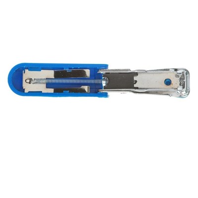 Степлер ATTOMEX № 10 малый пластиковый, со встроенным антистеплером, в картонной коробке, синий. Пробивная мощность 10 листов,глубина загрузки бумаги 30 мм.