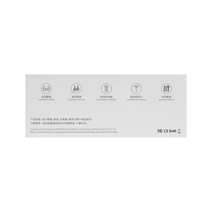 Страна: Китай В боксе: 100 шт Состав: Металл, пластик Материалы: металл, пластик Фасовка: по 1 шт Индивидуальная упаковка: Цветная коробка Габариты товара: 15,2 см × 7,2 см × 7 см Сертификат: Не подлежит сертификации Тип питания: От батареек Цвет: Серый, Белый Мощность, Вт: 3 Гарантийный срок, мес.: 6 Вид: Стерилизатор Таймер: Нет Регулировка температуры: Нет Вид стерилизатора: Ультразвуковой Ультразвуковой стерилизатор очистит ваши вещи от загрязнений. Используйте его для дезинфекции очков, ювелирных украшений, часов, зубных щёток и насадок, инструментов для макияжа и маникюра. Благодаря ультразвуковому воздействию на предмет стерилизатор проводит глубокую очистку. Ёмкость резервуар позволяет дезинфицировать сразу несколько предметов, а простое управление делает устройство понятным и лёгким. Стерилизатор оборудован специальными присосками, которые обеспечивают устойчивость устройства. С ними стерилизатор будет надёжно закреплён на поверхности. Стерилизатор работает от 2 батареек ААА. Комплектация