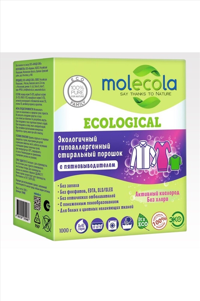 ID товара: 1190885 Состав: хлорид натрия 15-30%, карбонат натрия 20-35%, НПАВ 5-15%, перкарбонат натрия 5-15%, активатор кислородного отбеливателя менее 5%, энзимы 1%, ингибитор переноса красителя Сезон: Демисезон Производитель: Molecola Срок годности (мес): 24 Вес: (кг), 1 Страна бренда: Россия Страна производства: Россия Стиральный порошок гипоаллергенный с пятновыводителем 1кг Комментарии к товару