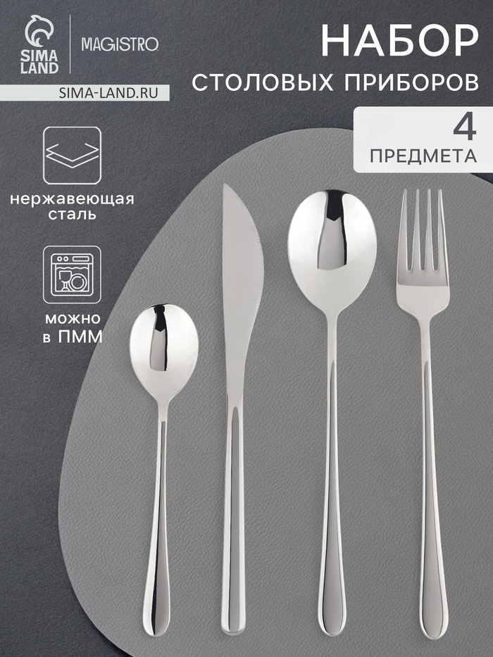 Комплектация1. Ложка столовая - 1 шт; 2. Вилка столовая - 1 шт; 3. Нож столовый - 1 шт; 4. Ложка чайная - 1 шт. Комментарии к товару
