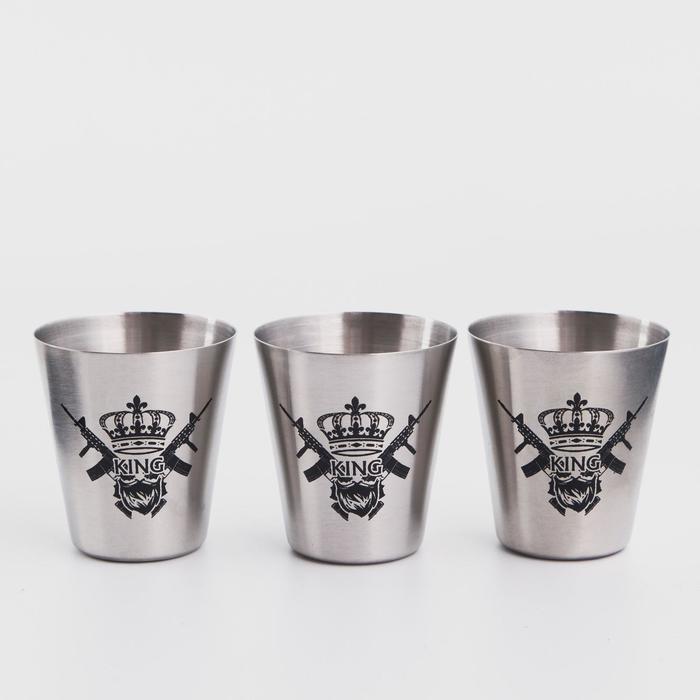 Стопки в чехле KING, нержавеющая сталь, набор 3 шт. × 30 мл