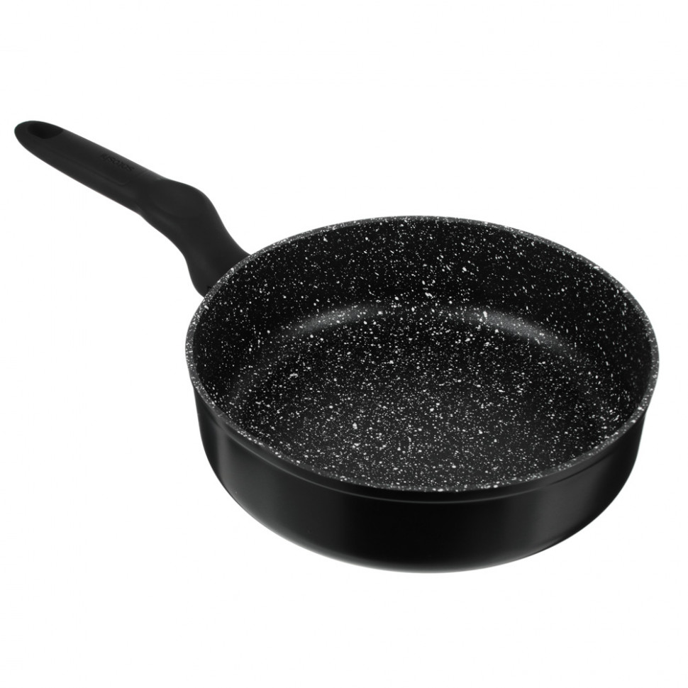 Глубокая сковорода TM Satoshi серия "Стоун" д.24 см станет вашей любимой посудой. Стойкое антипригарное покрытие под мрамор не позволяет пище пригорать, а литой алюминий обеспечивает равномерное приготовление блюд. Благодаря высоким ровным стенкам сковороду можно использовать как сотейник. Глубокая сковорода Satoshi "Стоун" подходит для использования на всех видах плит, в том числе и на индукции. Такую посуду можно мыть в посудомоечной машине, а благодаря петле на ручке хранить вертикальном положении. Ручки сковород серии "Стоун" имеют эргономичную изогнутую форму с углублением под большой палец, выполнены из бакелита с силиконовым напылением, поэтому сковорода не выскользнет из рук во время готовки.
