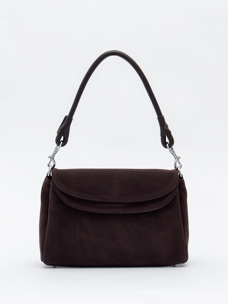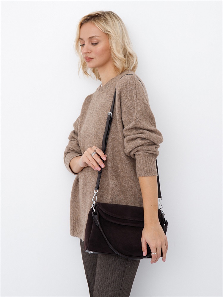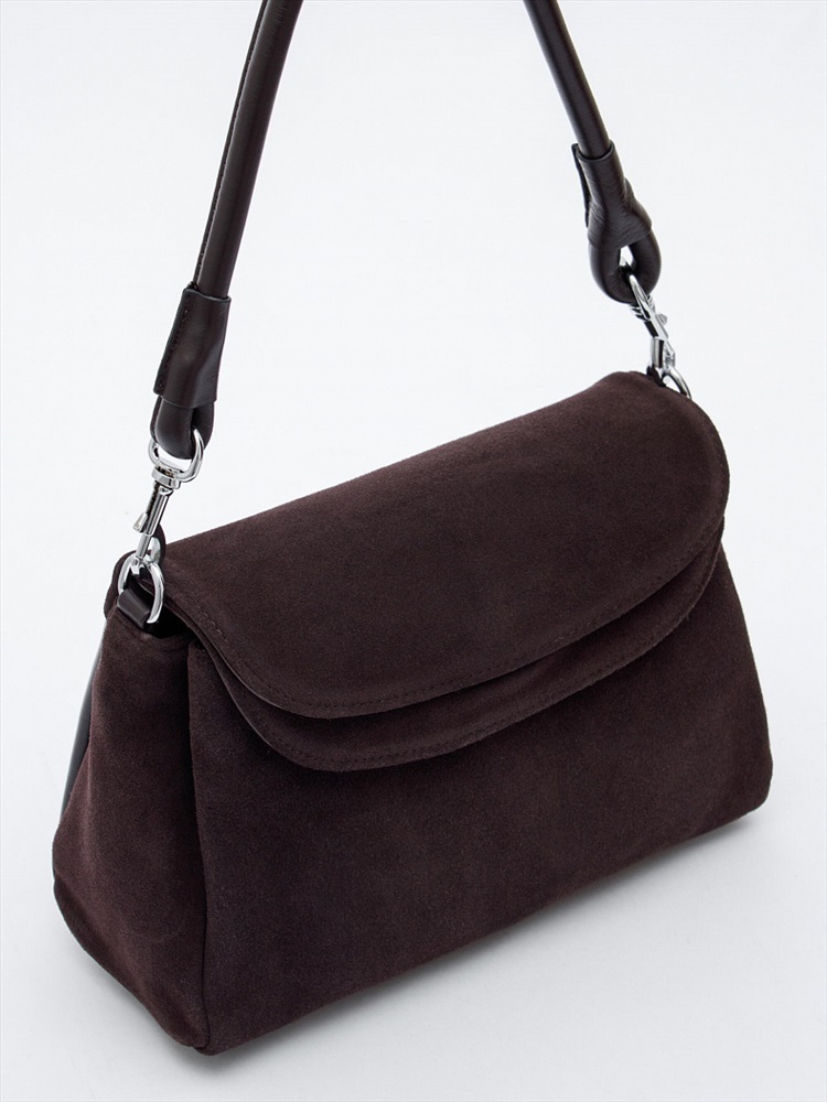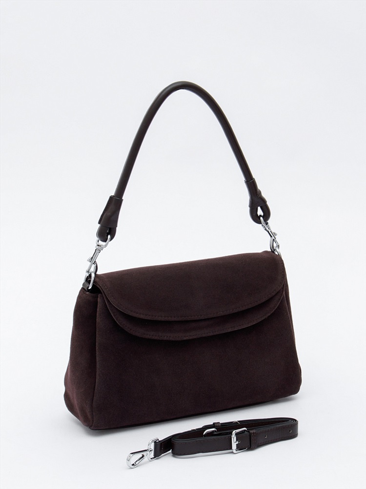 Стильная сумка с двойным клапаном, выполнена из замши. Дополнена серебристой фурнитурой. Данная модель закрывается на клапан. Каркас мягкий. Носится в руке за съемную удлиненную ручку или на плече. В комплекте имеется съемный ремень с регулировкой длины.