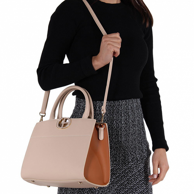 Длина (см): 28 Высота (см): 22 Вес (г): 850 Бренд: Chrisbella Материал: Экокожа Базовая сумка-тоут в комплекте с кошельком, выполнена из экокожи. Декорирована пряжкой. Дополнена золотистой фурнитурой. Данная модель закрывается на молнию, носится на плече или через плечо с помощью ремня. Каркас жесткий. На дне предусмотрены ножки для устойчивости. Внутри: подкладочная ткань, на боковых частях карман на молнии и открытый. Снаружи: основной отдел на молнии. На задней части карман на молнии. На сумке в молочном цвете имеется дефект: трещина внутри на боковой стенке Комментарии к товару