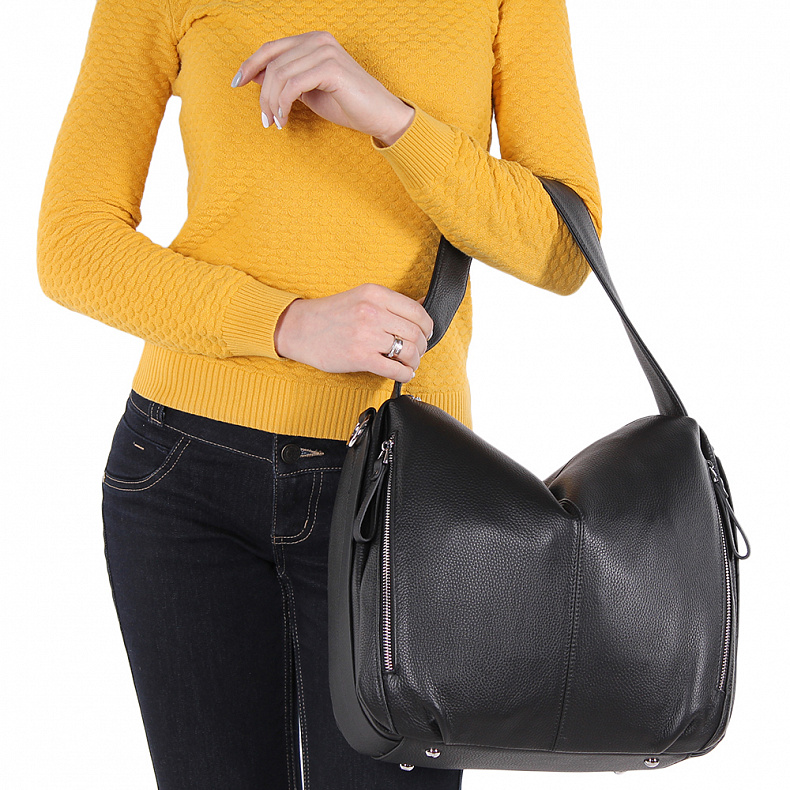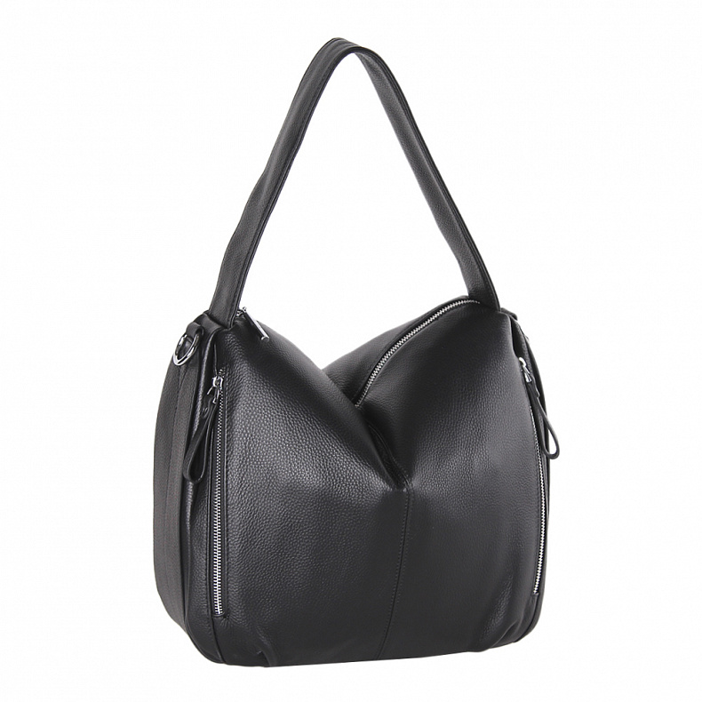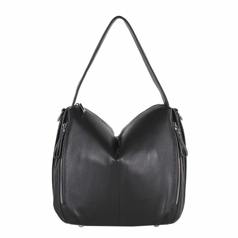 Вместительная сумка, выполнена натуральной кожи. Дополнена серебристой фурнитурой. Данная модель закрывается на молнию, носится в руке или на плече. В комплекте есть ремень съемный с регулировкой длины.. Каркас мягкий. На дне предусмотрены ножки.