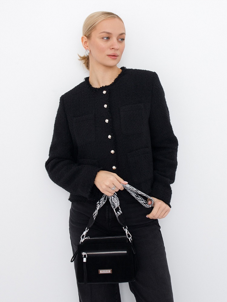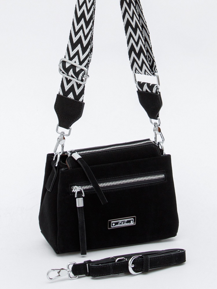 Длина (см): 2 Высота (см): 15 Вес (г): 600 Бренд: S-Style Материал: Замша Сумка кросс-боди, выполнена из натуральной замша. Декорирована логотипом на передней части. Дополнена серебристой фурнитурой. Данная модель закрывается на молнию. Каркас полужесткий. Носится на плече или через плечо. В комплекте имеется плечевой ремень тонкий с регулировкой длины и ремень-стропа так же с регулировкой длины. На дне предусмотрены ножки. Внутри: на боковых частях карман открытый и на молнии. Снаружи: основной отдел закрывается на молнию, два отдела на кнопках. На задней части и передней карманы на молниях. Комментарии к товару